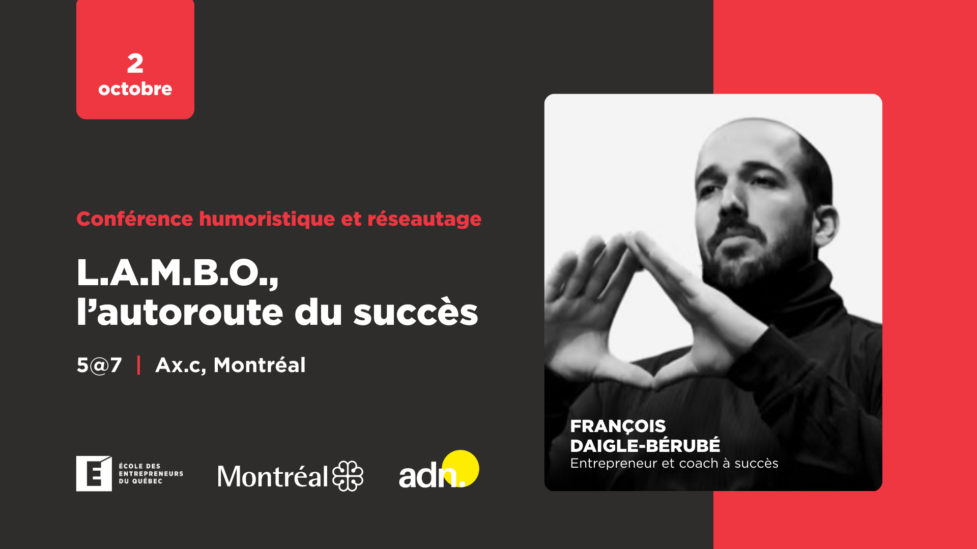 Jeudi 2 octobre 2025 - Conférence et réseautage - L.A.M.B.O, l'autoroute du succès